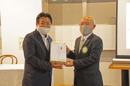 前田会長より「会長の時間」のクイズに正解した松田会員にプレゼント!