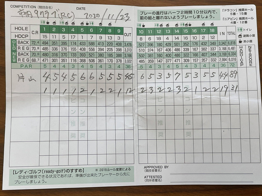 何よりも嬉しかったのは大分東急で後半OUTのパット数が12だった事、前半19と合わせて31でした。