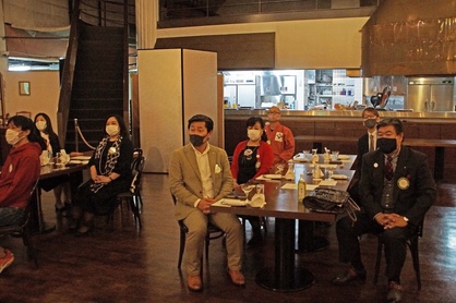 例会途中で、Eクラブらしく現地参加できなかったメンバーがZOOMで参加していただきました!植山パスト会長と佐々木会員!