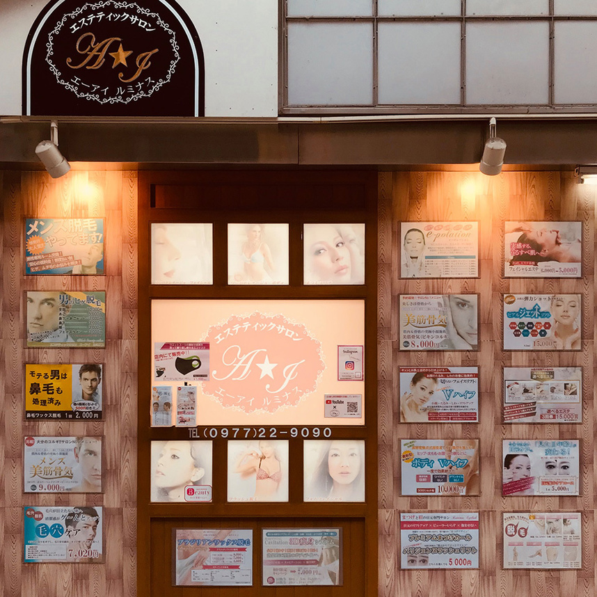 エステティックサロン エーアイ ルミナスは別府のソルパセオ銀座の中にあり、開店当初は2坪の小さな店舗からスタートしました。2年目に23坪の現在の店舗に移転し、現在はメンズルーム・ネイルルームを併設していて40坪程の店舗で営業しています。