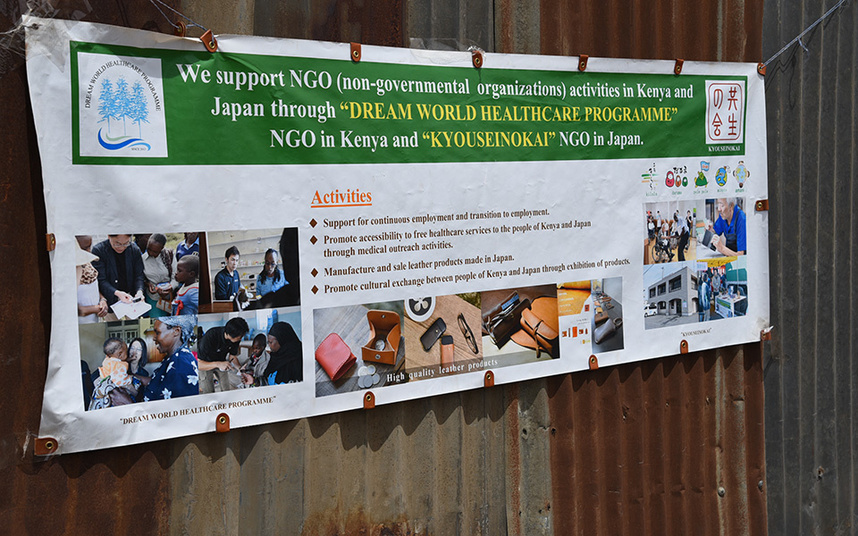 その後数年間のナクル保健省との調整を経て、2013年1月、NGO「DREAM WORLD HEALTHCARE PROGRAMME」を設立。ナクル保健省の医療スタッフ20~30人と協力し、同州にある約20カ所のスラム街を順繰りに回って巡回診療を実施しています。これまで90回近くになります。一度の巡回診療で、乳幼児からお年寄りまで計200~400人を診察し、気がついたら6万人を超す方を診てきました。