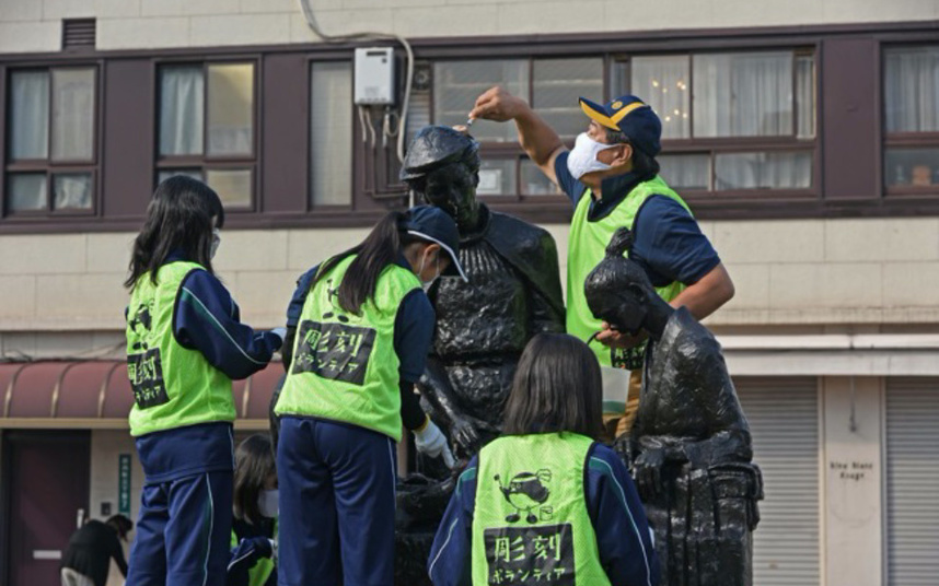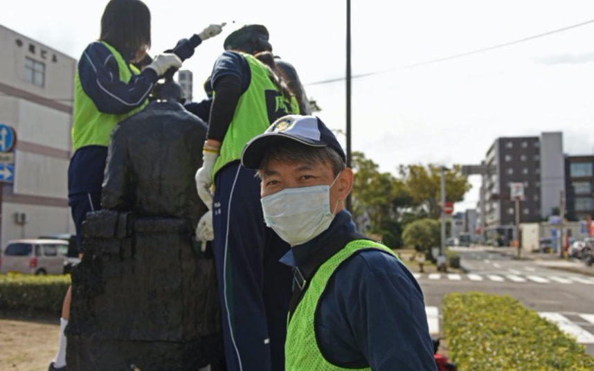 10月17日 大分大学教育学部附属中学校インターアクトクラブ、遊歩公園彫刻清掃ボランティア。コロナ禍のため清掃ボランティアであるのに参加人数に制限がかかっていまして、最大6名まででした。