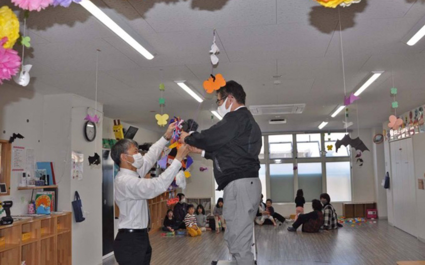 10月24日 例年行っていたスマイス・キッズ保育園へのハロウィン訪問、やはりこの時期、インターアクト生の訪問は叶わず、インターアクト委員のロータリアンだけで取り付けに行きました。
