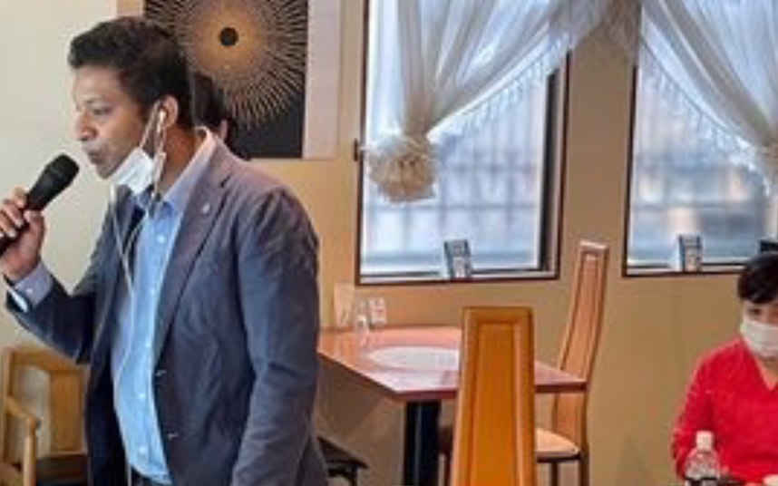 当クラブのスチッタ会長はスリランカの出身。米山奨学生から米山大使、そしてロータリアンになりました。その会長が大分県別府市で営むスリランカ料理店をホストに発信しました。