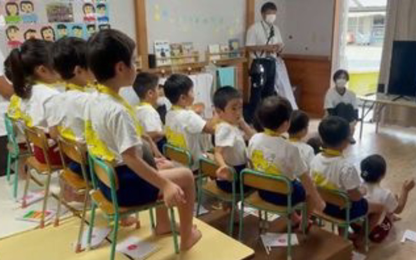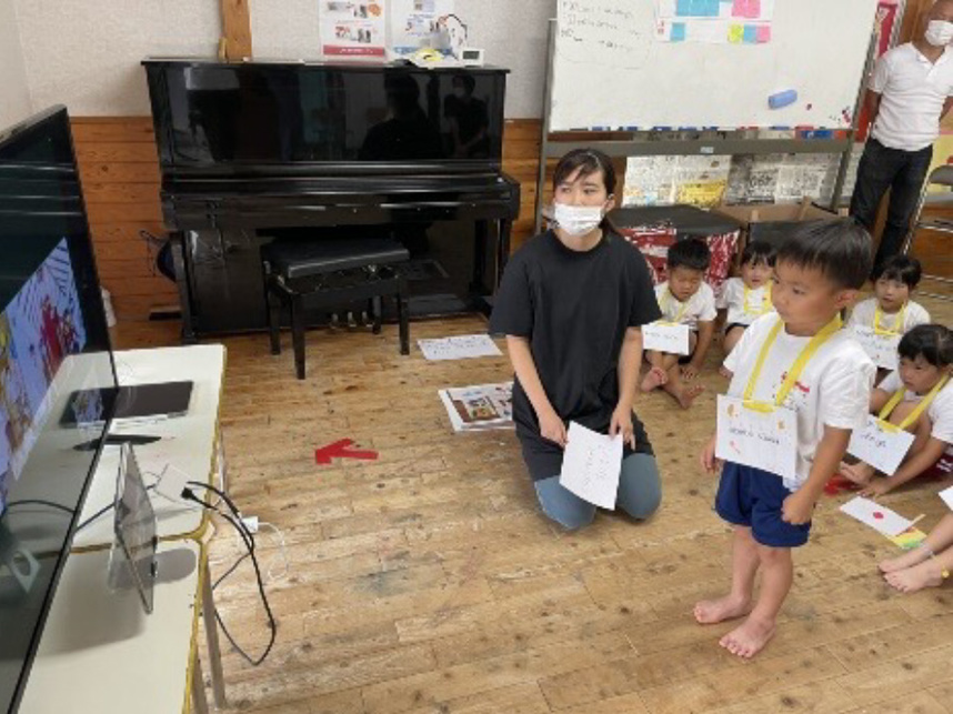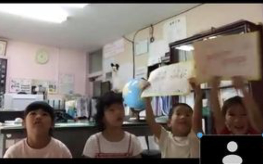 次に、芦北の子ども達がスリランカの日本語学校の生徒達に、各園の紹介をします。
