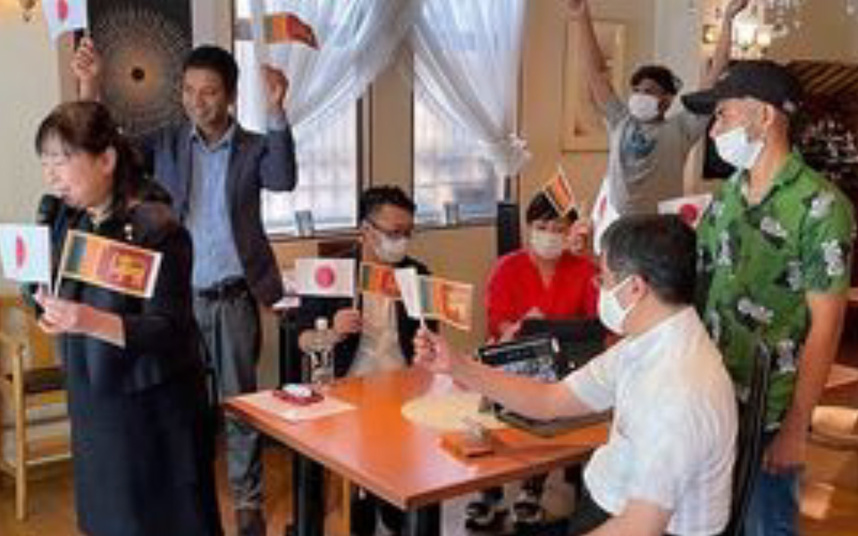 今回は、オンラインでスチッタ会長の経営する「スリランカ料理カムカム」をホストに、スリランカの日本語学校と、前田一徳副委員長が経営する熊本芦北町の、あしきたまちの子ども園・計石保育園・湯浦保育園・大野保育園の計6箇所をオンラインで繋ぐ交流でした。