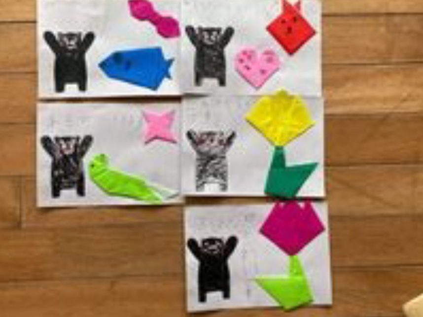芦北の園児達から贈られた手作りのプレゼントを、楽しそうに披露してくれました。
