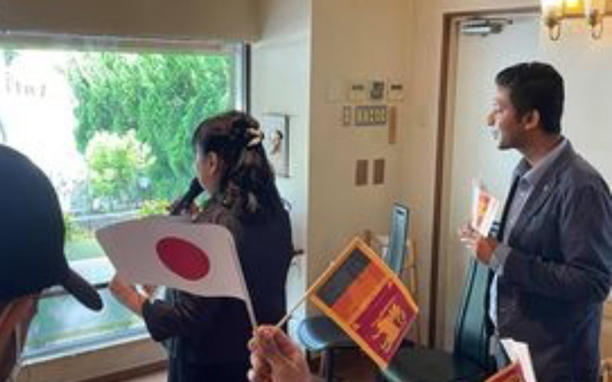 再会を誓って、スリランカと日本の国旗で絆を深めました。