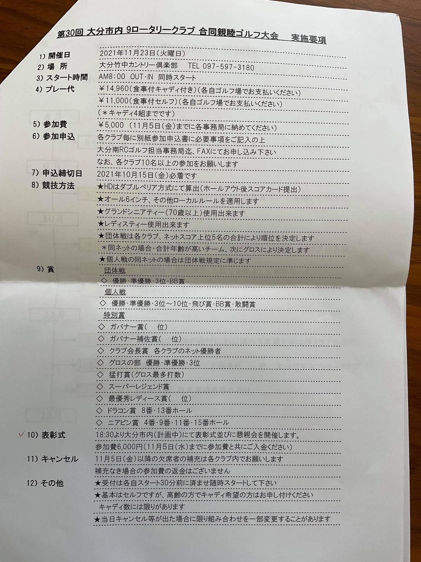 《第30回大分市内9RC合同親睦ゴルフ大会のお知らせ》