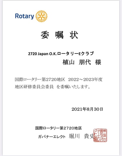 (2720 Japan O.K. ロータリーEクラブ クラブ管理運営 親睦 委員長・