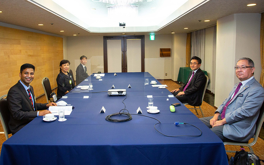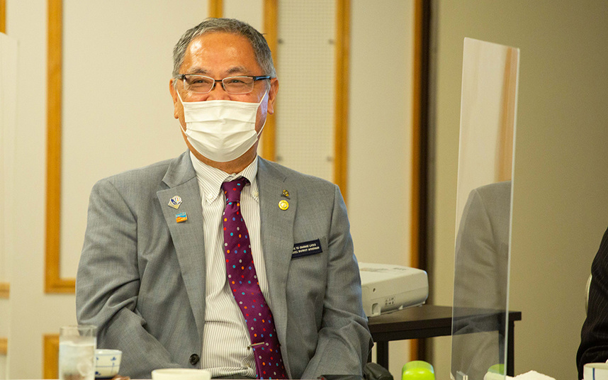 会長幹事懇談会参加者:大森ガバナー様、坂元ガバナー補佐様、薬真寺地区副幹事(副会長)、スチッタ会長、本田幹事
