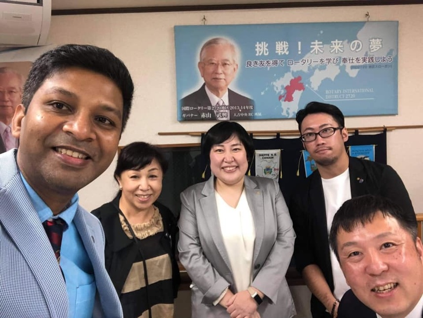 スチッタ会長・薬真寺副会長・中川会長エレクト・片山会員・長野会員