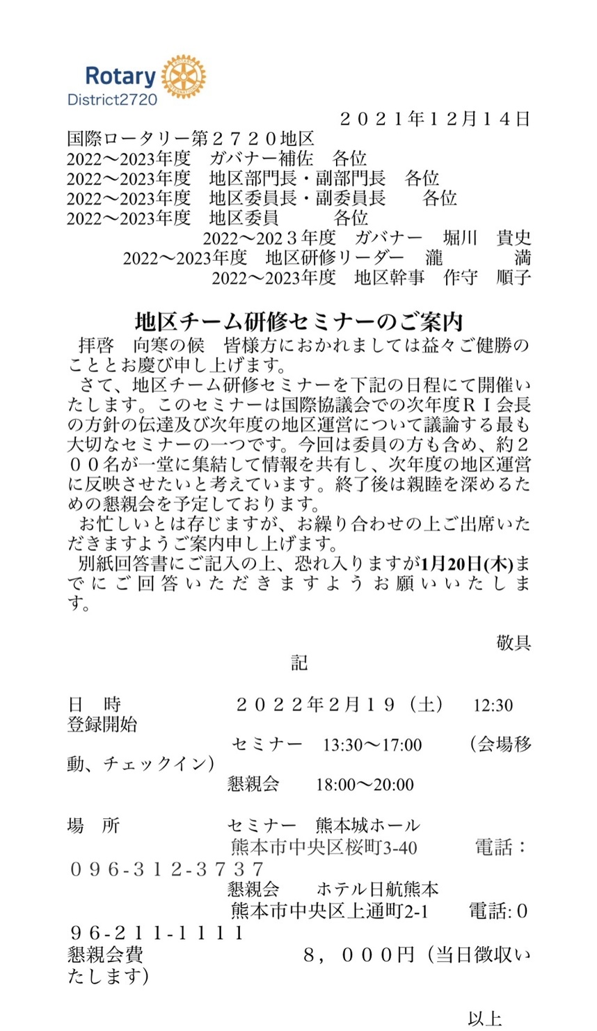 初めての試みの新春合同例会となりますが、ご理解ご協力の程、何卒宜しくお願い申し上げます。 敬具