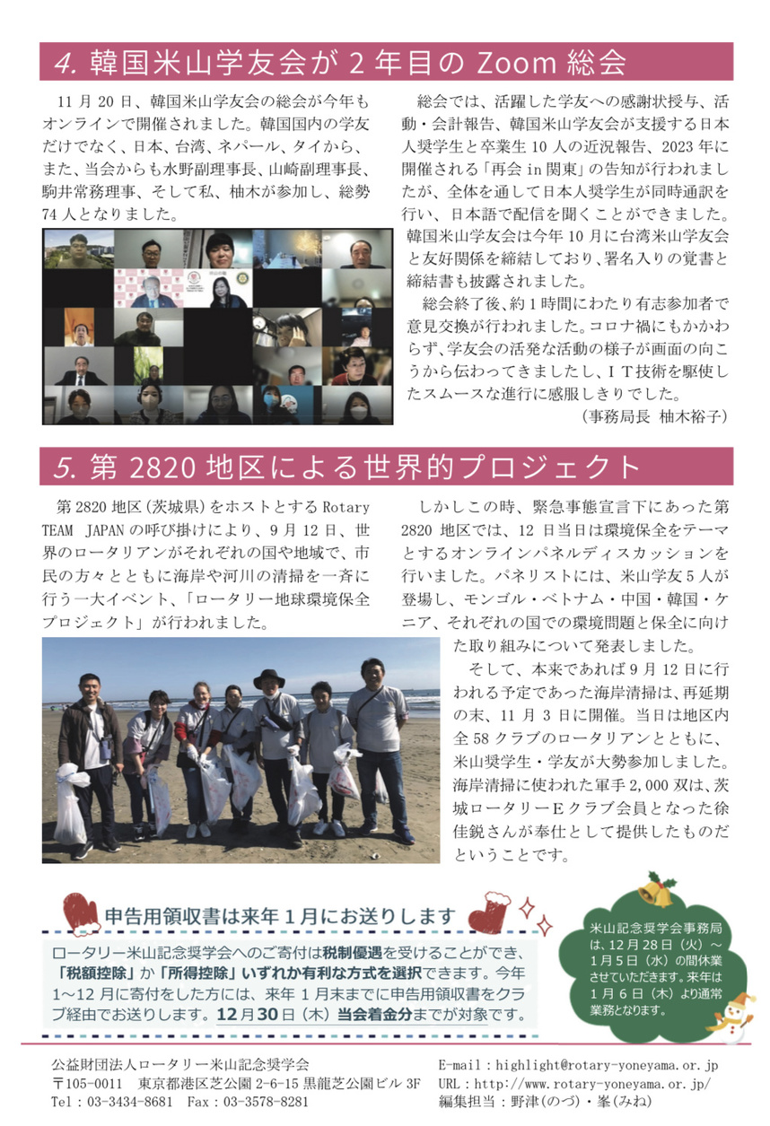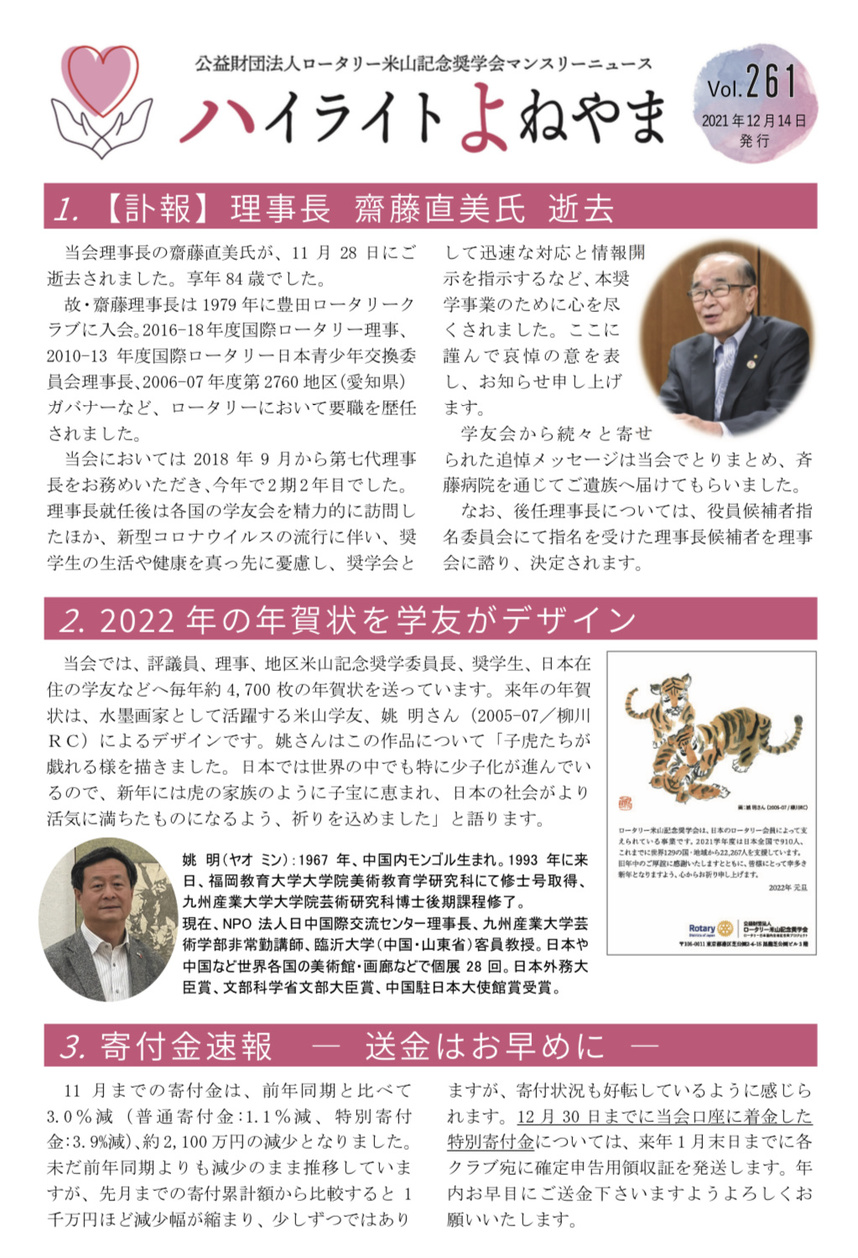 今年も残すところわずかとなりました、2021年はEクラブの会員皆様には大変お世話なりました。皆さまに感謝しております。来年も、世の中が必要とされている奉仕活動を皆さんと一緒に頑張っていきたいと思っております。是非来年もどうぞよろしくお願い致します。