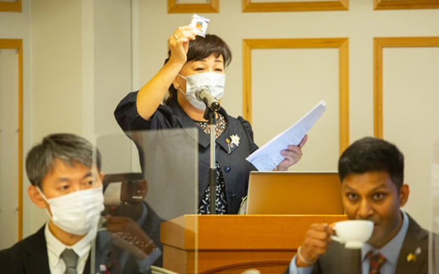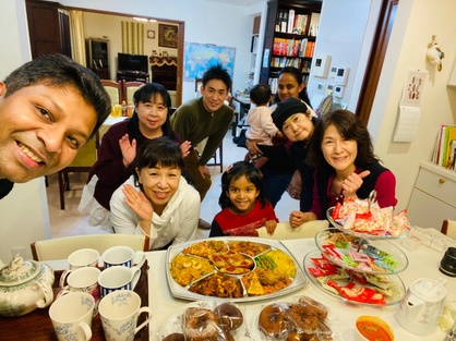 女性会員と助っ人メンズ会員で集まって、あしきたまちの子ども園の園児さんに折り紙などでクリスマスプレゼントを作りました。スチッタ会長より美味しいスリランカカレーの差し入れを頂きました。感謝の気持ちを込めて、1口スマイル致します。