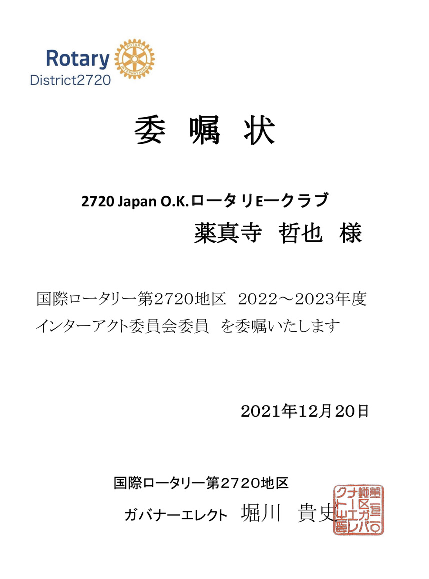 (2720Japan O.K.ロータリーEクラブ プログラム委員長・