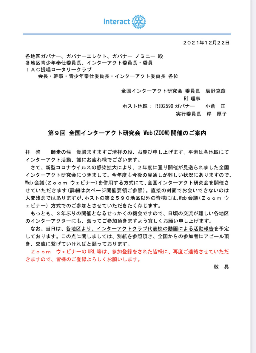 《第9回全国インターアクト研究会 Web(ZOOM)開催のご案内》