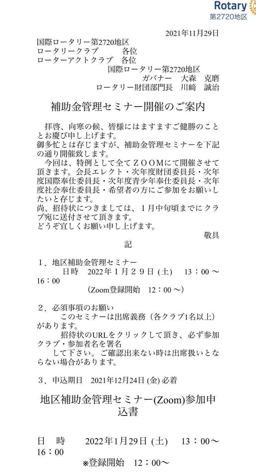 2720 Japan O.K. ロータリーEクラブ会員の方はこちらで出席へ