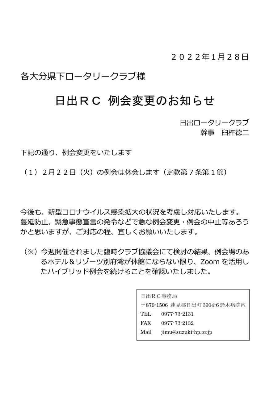 例会 第25回【通算第211回】 2022年1月24日正午~1月31日正午(出席数・出席率1月31日正午)