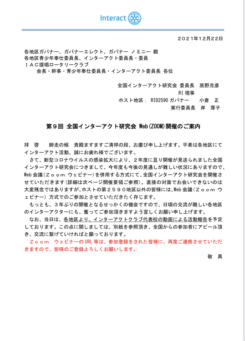 《第9回全国インターアクト研究会 Web(ZOOM)開催のご案内》