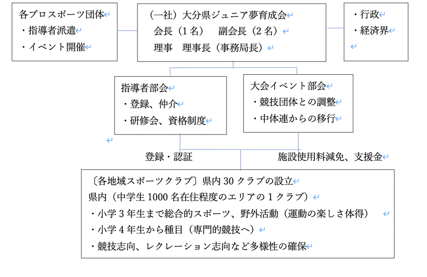 ・大分県ジュニアスポーツの統括、クラブの認証、振興、指導