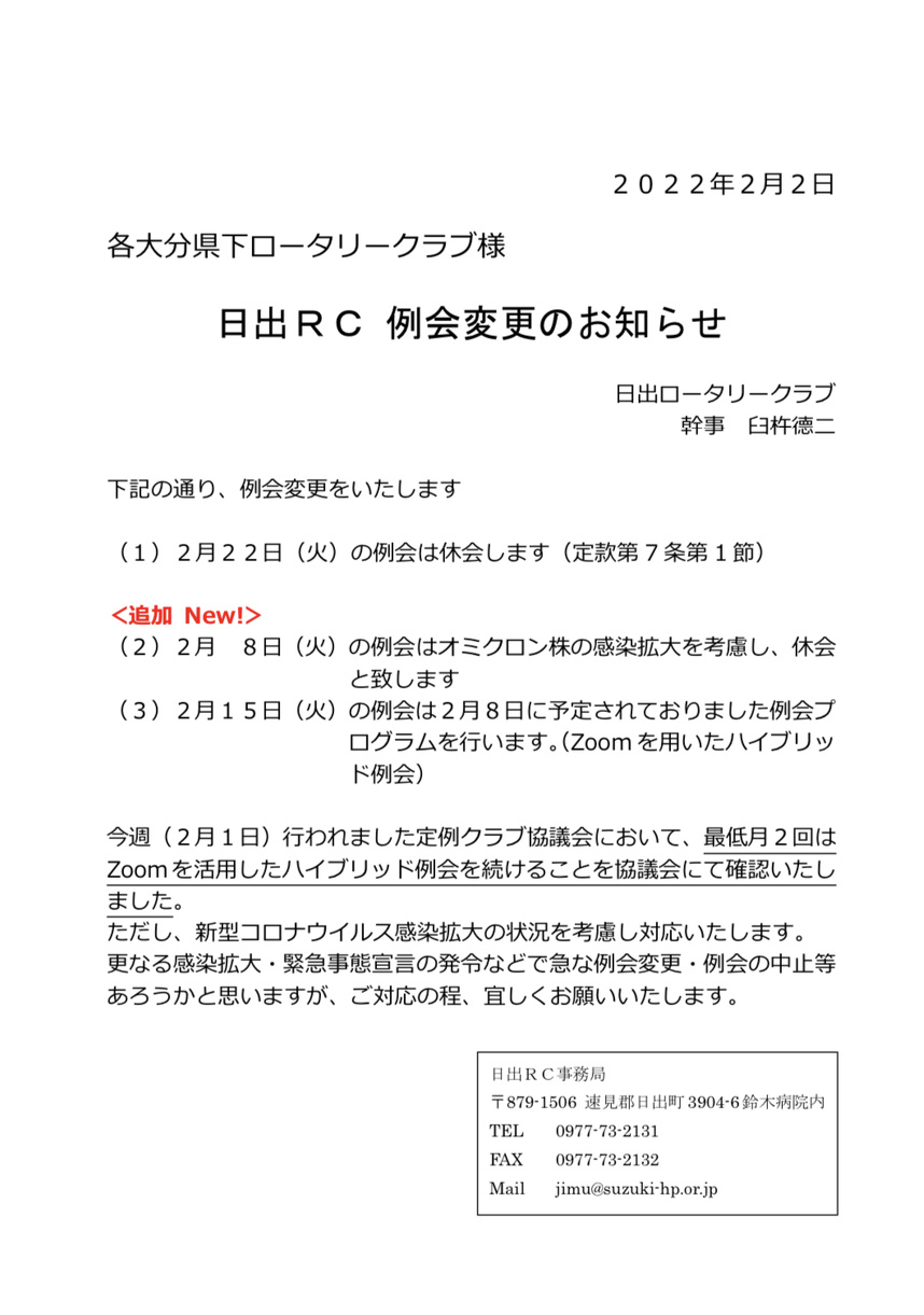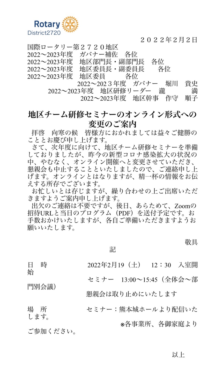 2720 Japan O.K. ロータリーEクラブ会員の方はこちらで出席へ