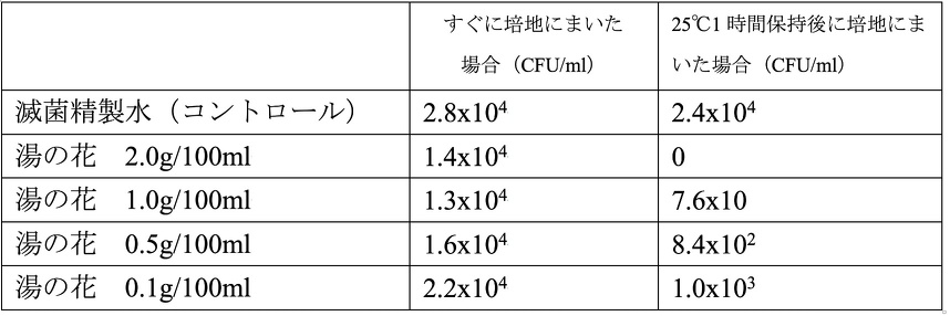 (1)湯の花は黄色ブドウ球菌を不活性化させました