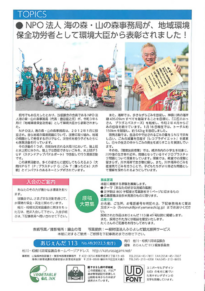 1.河川敷の不法投棄ゴミ清掃を企画、多くの参加を得てきれいになった。