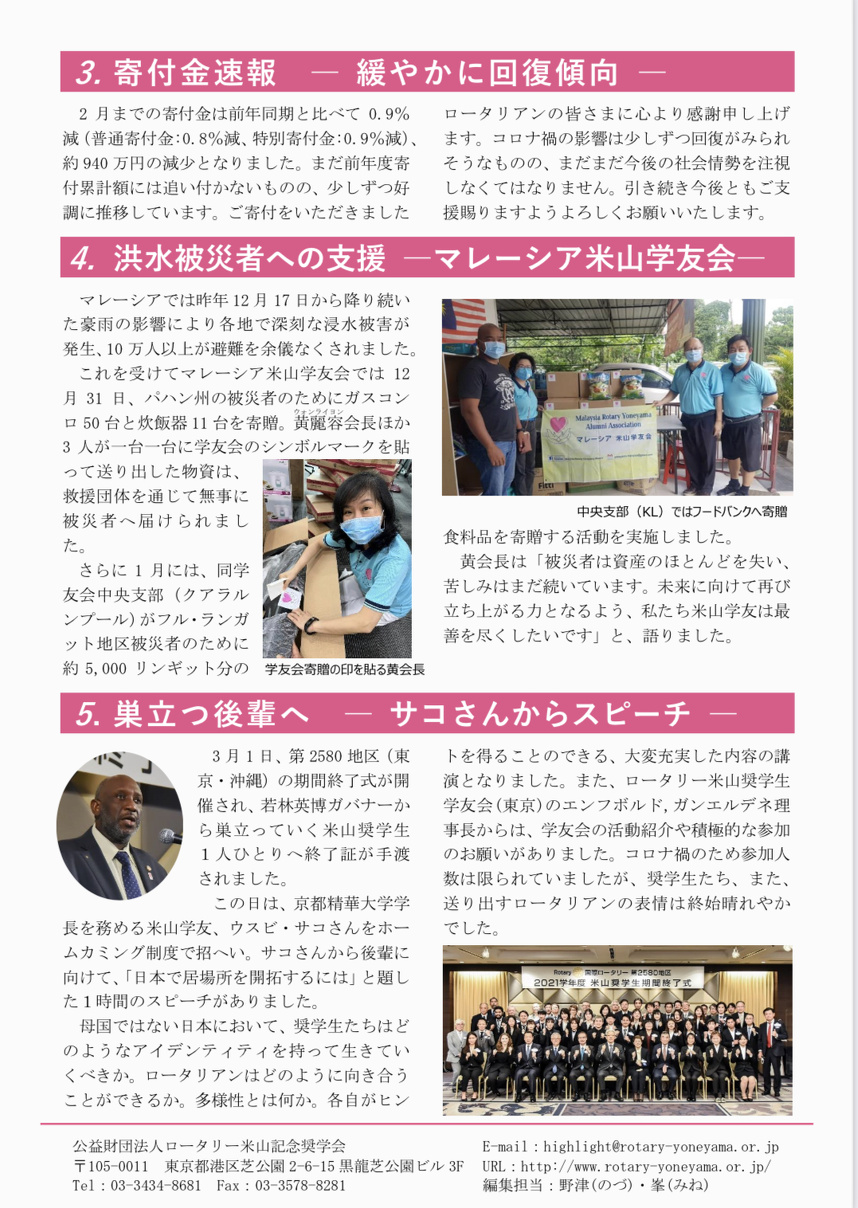 我がクラブも今後、しっかり寄付をして、地区補助金を使った奉仕プロジェクトを行い、社会貢献していきましょう。