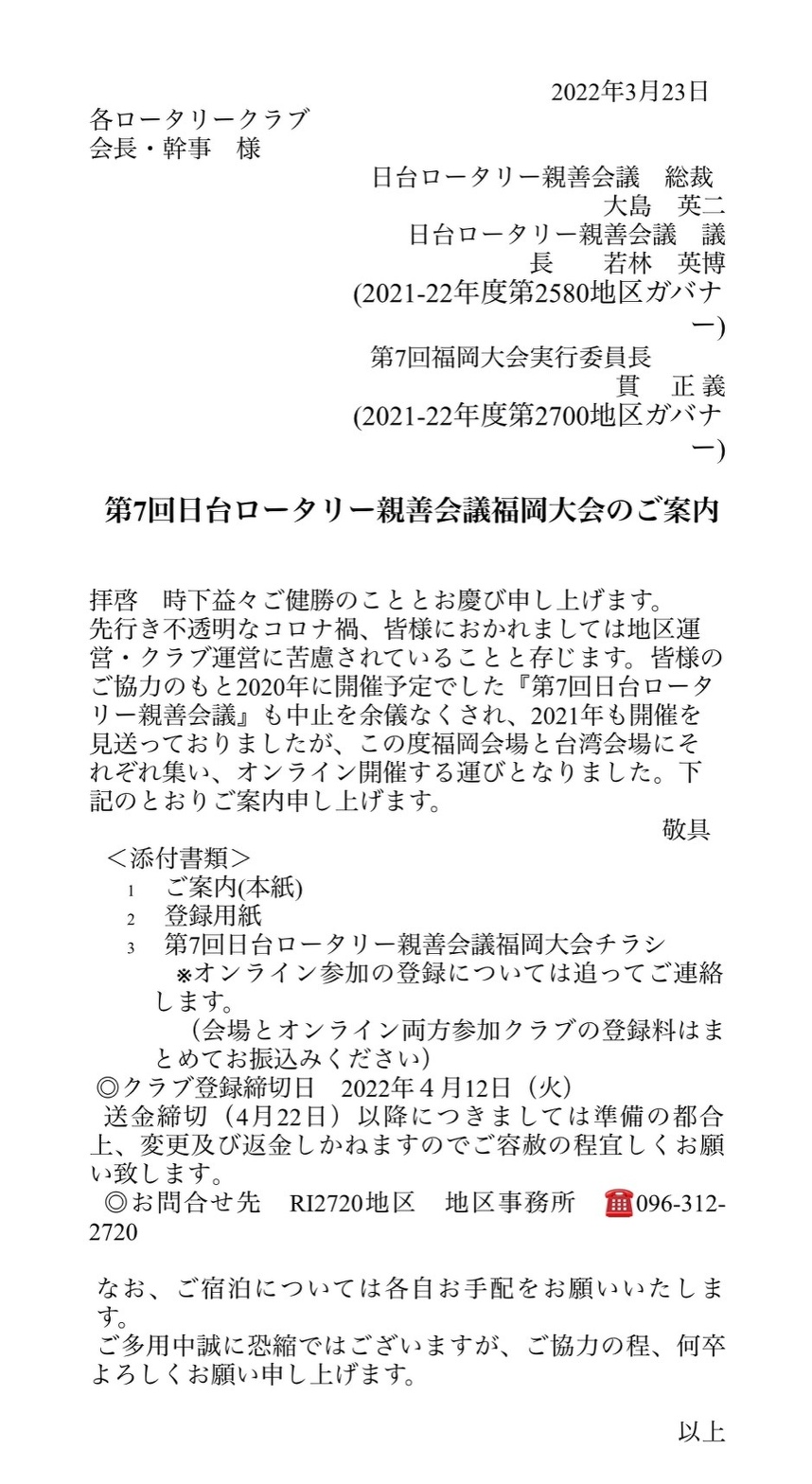 《第7回日台ロータリー親善会議福岡大会のご案内》