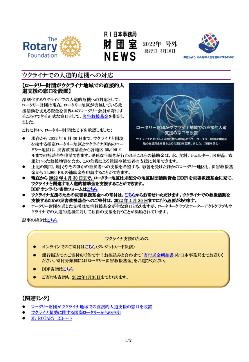 《RI日本事務局 財団室NEWS 2022年 号外》