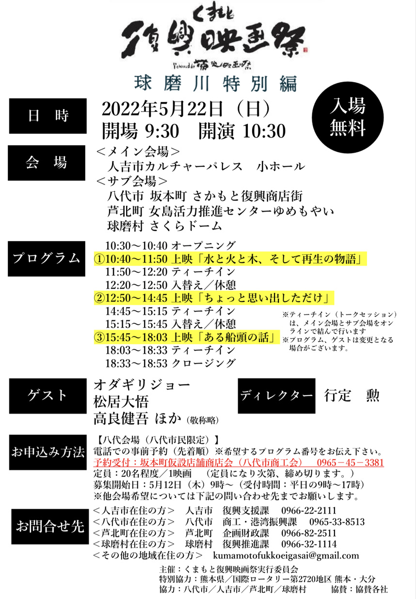 《くまもと復興映画祭 球磨川特別編の開催について》熊本県・国際ロータリー様より ご参加のお願い