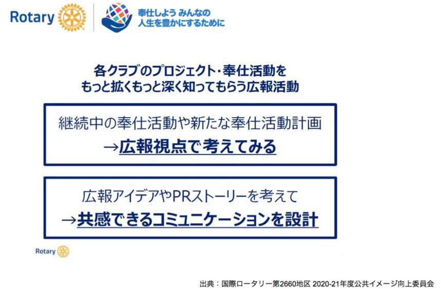 - 若い世代や女性会員にロータリーの素晴らしさを伝えるセミナーの開催