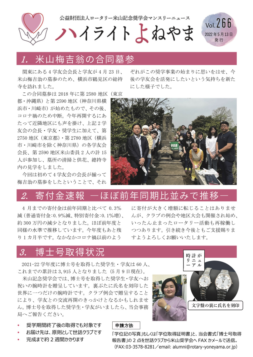 毎年度初めに更新を予定しておりますので、7月に更新版を2022-23年度ガバナー事務所宛ご案内差し上げます。