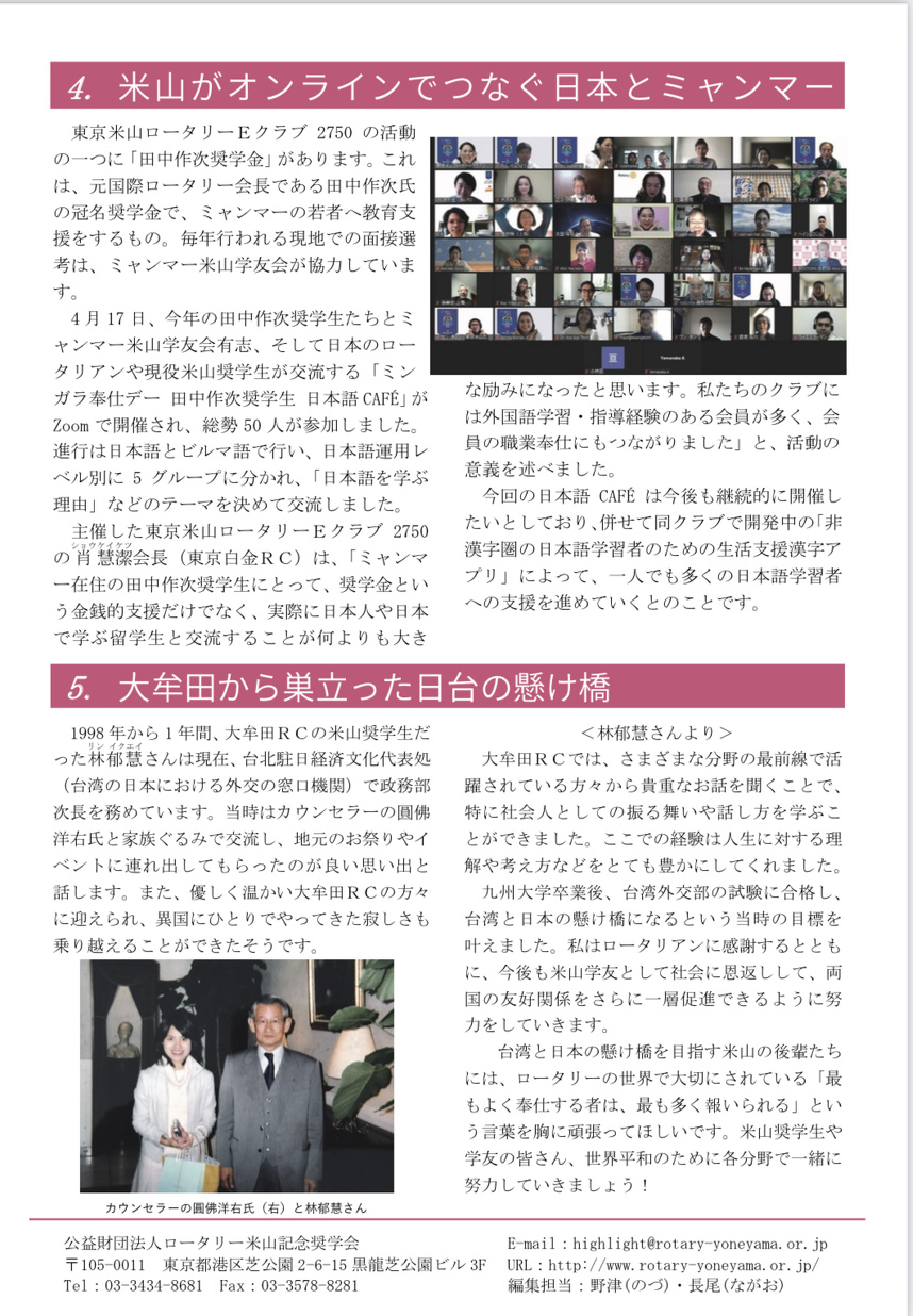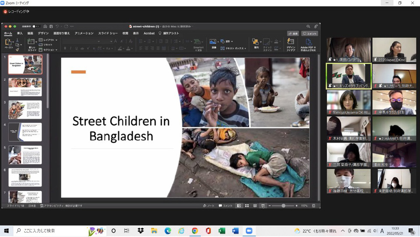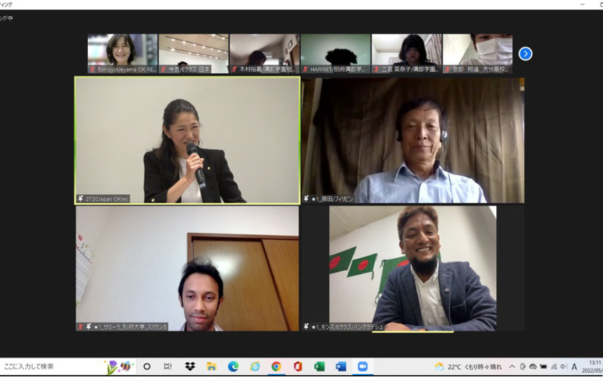 5月31日に第三回バーチャル社会見学を開催しました。スリランカの日本語学校の参加が国際情勢の悪化により危ぶまれましたが、無事に参加でき滞りなく終了しました。当日、ご参加ご協力いただきました皆様、そしてこれまで私が社会奉仕委員長を務めて三年間の間に計14回のミーティングを重ねてまいりました。社会奉仕委員のみならず、多くの会員の皆様に支えて頂きながら、バーチャル社会見学が誕生し、国際ロータリーにも取り上げてもらい、何と言っても子ども達の笑顔に繋がる活動ができました事に感謝いたします。