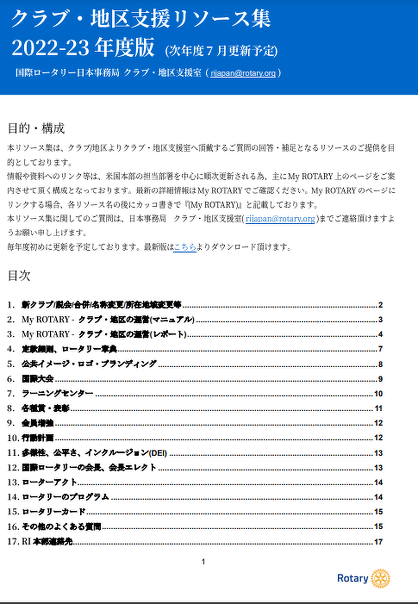 <<クラブ・地区支援リソース集2022‐2023年度版のご案内>>