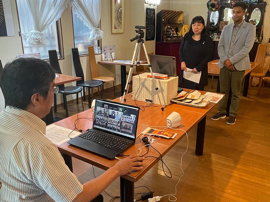 今回も、第二回目と同じくオンラインでスチッタパスト会長の経営する「スリランカ料理カムカム」をホストに、スリランカ日本語学校と、前田一徳委員長が経営する熊本芦北町の、あしきたまちの子ども園・計石保育園・湯浦保育園・大野保育園の計6箇所をオンラインで繋ぐ交流でした。