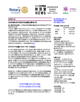 財団室ニュース9月号がアップされましたのでご案内致します。今月号は全18ページから成り、ウクライナ支援の他、ポリオプラスやポールハリスソサエティのご案内など、ロータリー財団について学べるたくさんの情報が掲載されています。みなさま、ぜひ全文に目をお通し下さい。