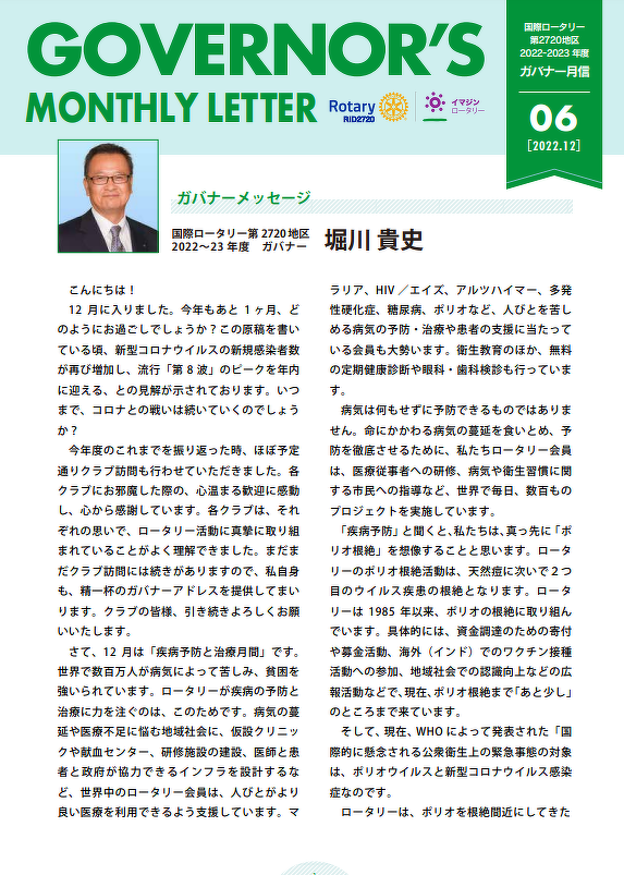 ガバナー月信最新号をお届け致します。画像をクリックすると全ページがダウンロードできます。