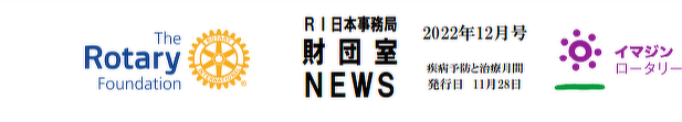今年も残すところあと 1 ヶ月、早いもので、12月に突入しました。 今月のロータリー月間は、疾病予防と治療(Disease Prevention and Treatment Month)月 間になります。ちなみに、12 月 15 日は、ロータリー国際大会の早期割引登録の締切日です ので、参加予定のロータリアンの皆様はお早めの登録をお願いします!