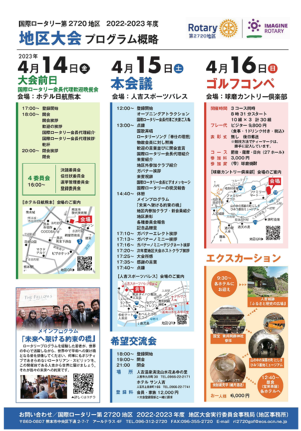 そして2回目のご案内ですが、まだ細かい日程は決まっていませんが、5月ころに熊本にて職業奉仕委員会を開催したいと思います。1回目と同じように職場訪問を行いまして、熊本では2022年3月に行われた職業奉仕セミナーで木下部門長が話をされた、「ロータリアンにおける職業奉仕について」の動画を見ながら勉強会を行います。