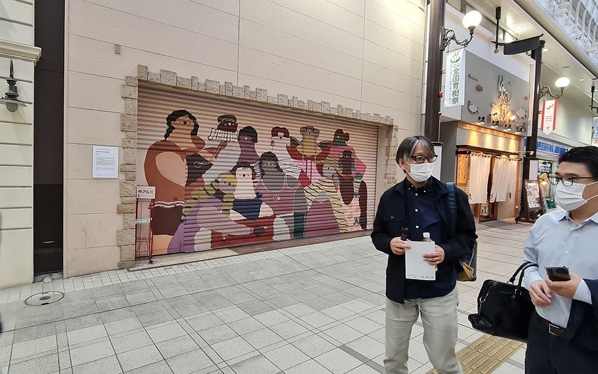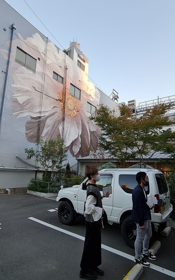 先頭に立って準備をされている松田さんの手を止めていただき、一緒に街中アートを解説付きで周るという、なんと素晴らしい時間でしょう!