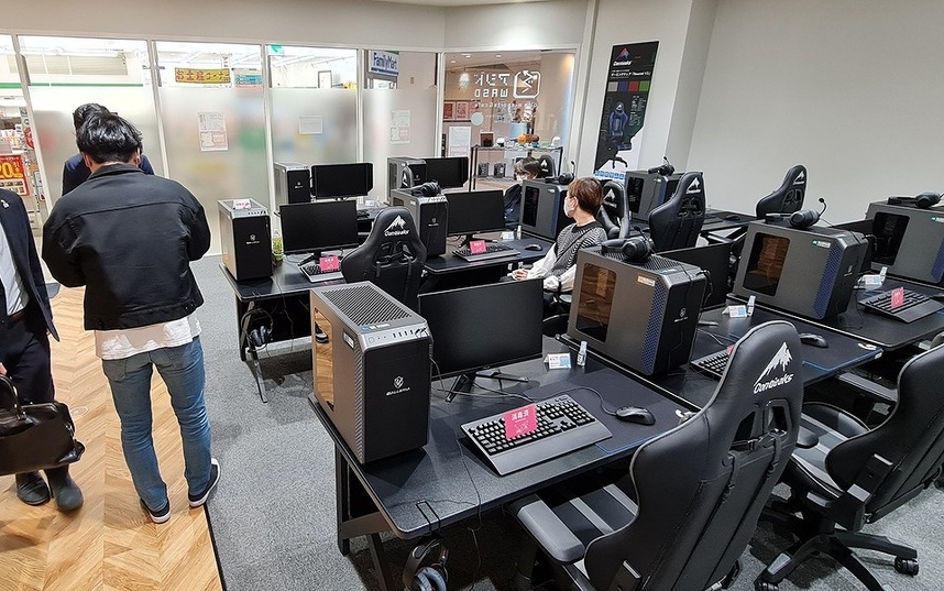 WASDにはたくさんの最新パソコンが置かれていました。椅子がスポーツカーのバケットシートのような感じで、初めて座ってみました。想像以上に座り心地がよくて、何よりゲームの世界に入り込みやすいと感じました。
