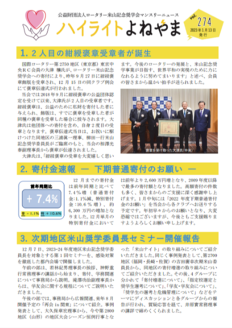 ハイライト米山274号が届きました。原文は画像をクリックするとダウンロードできます。