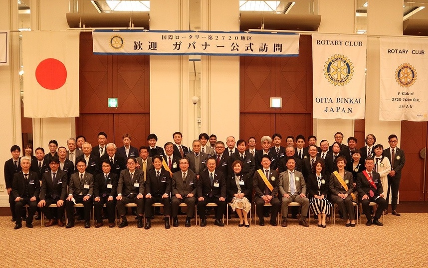 本日は、国際ロータリー、ジェニファージョーンズ会長の名代(みょうだい)として 2720地区 堀川貴史ガバナーにお越しいただき、大分臨海RC様と我々OKEクラブの合同公式訪問例会を開催いたします。