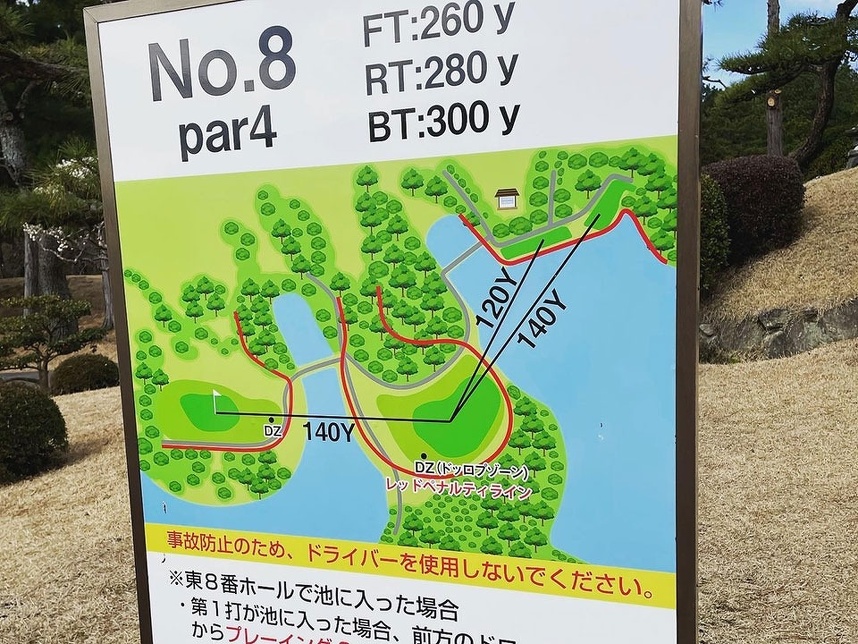 始めましてのコースで、高麗芝でグリーンが早く、トリッキーなコースが多くとても楽しか ったですが、攻略は出来ずにスコアは83でした(*ノωノ)