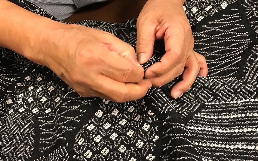 大分には「豊後絞り」という綿と藍を使った染めの技術があります。
