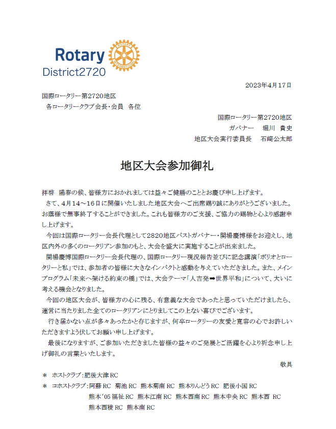 地区大会のお礼