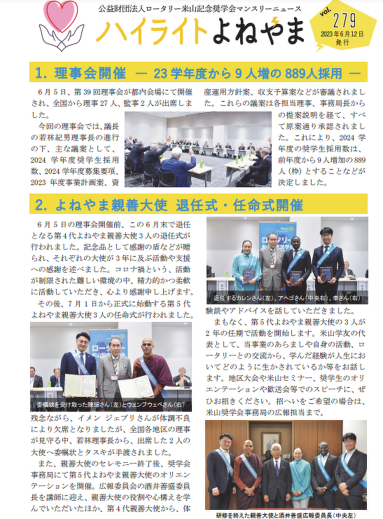 ハイライトよねやま279号が届きました。画像をクリックするとダウンロードできます。ぜひご覧ください。