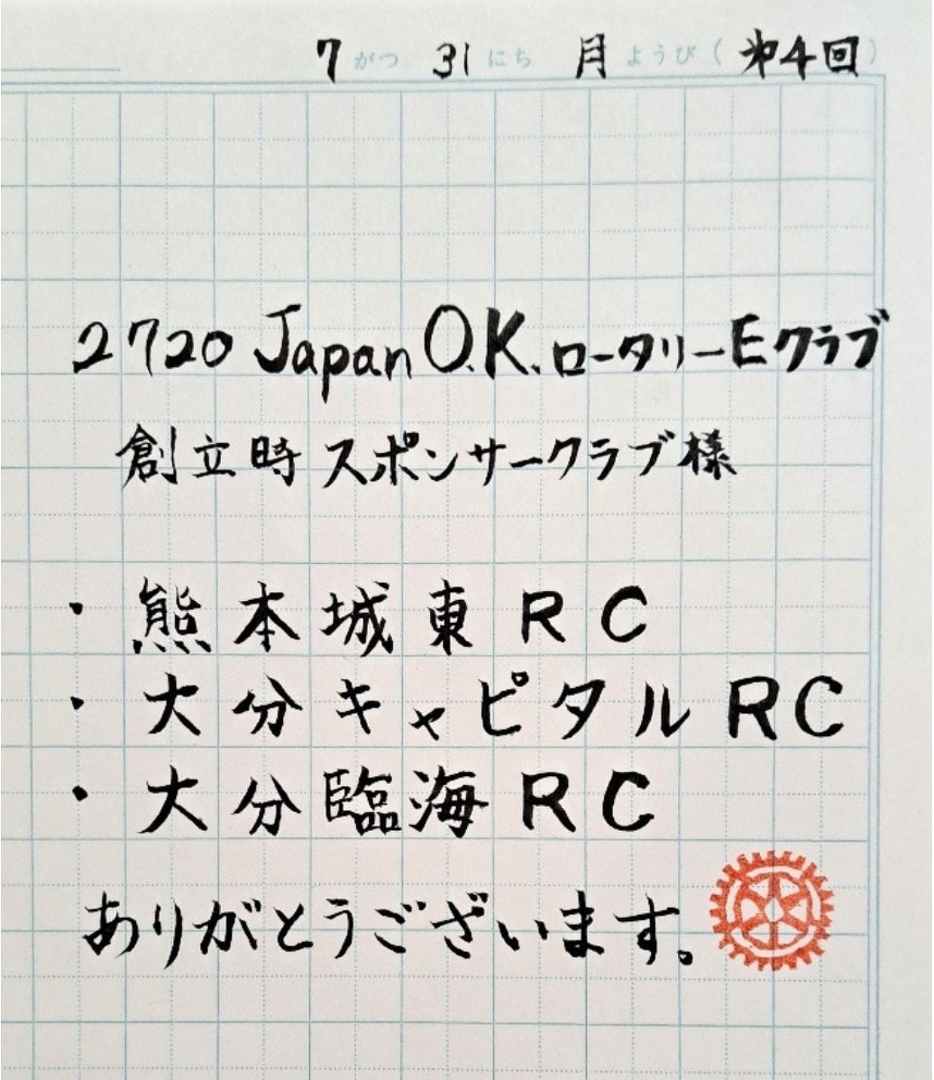 会長の時間:「2720Japan O.K.ロータリーEクラブ創立時のご縁」~大分臨海RC様とのガバナー公式訪問合同例会にて~
